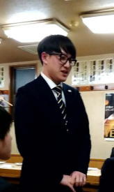 4年細川より、後輩への感謝、今後の進路とフェンシングへの抱負など語った後、後輩達へのプレゼ