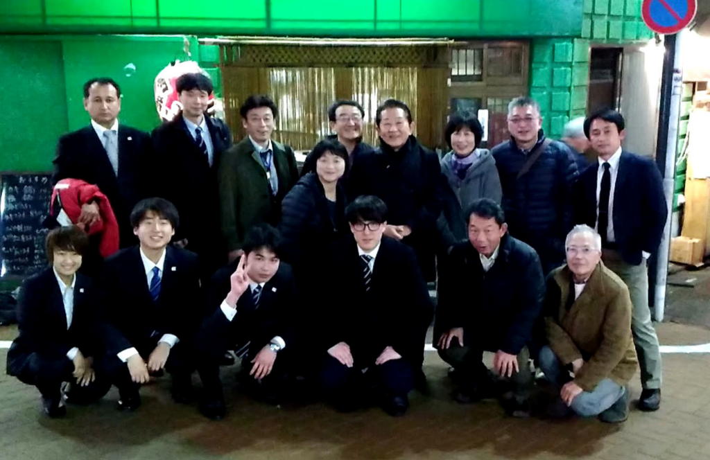 青柳OB会長、林先輩、廣岡先輩、水谷先輩、岩下先輩、河原塚先輩、糸賀先輩、下山田